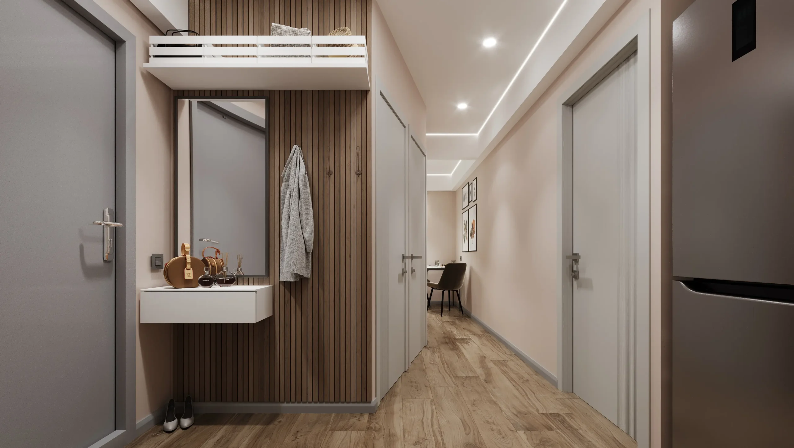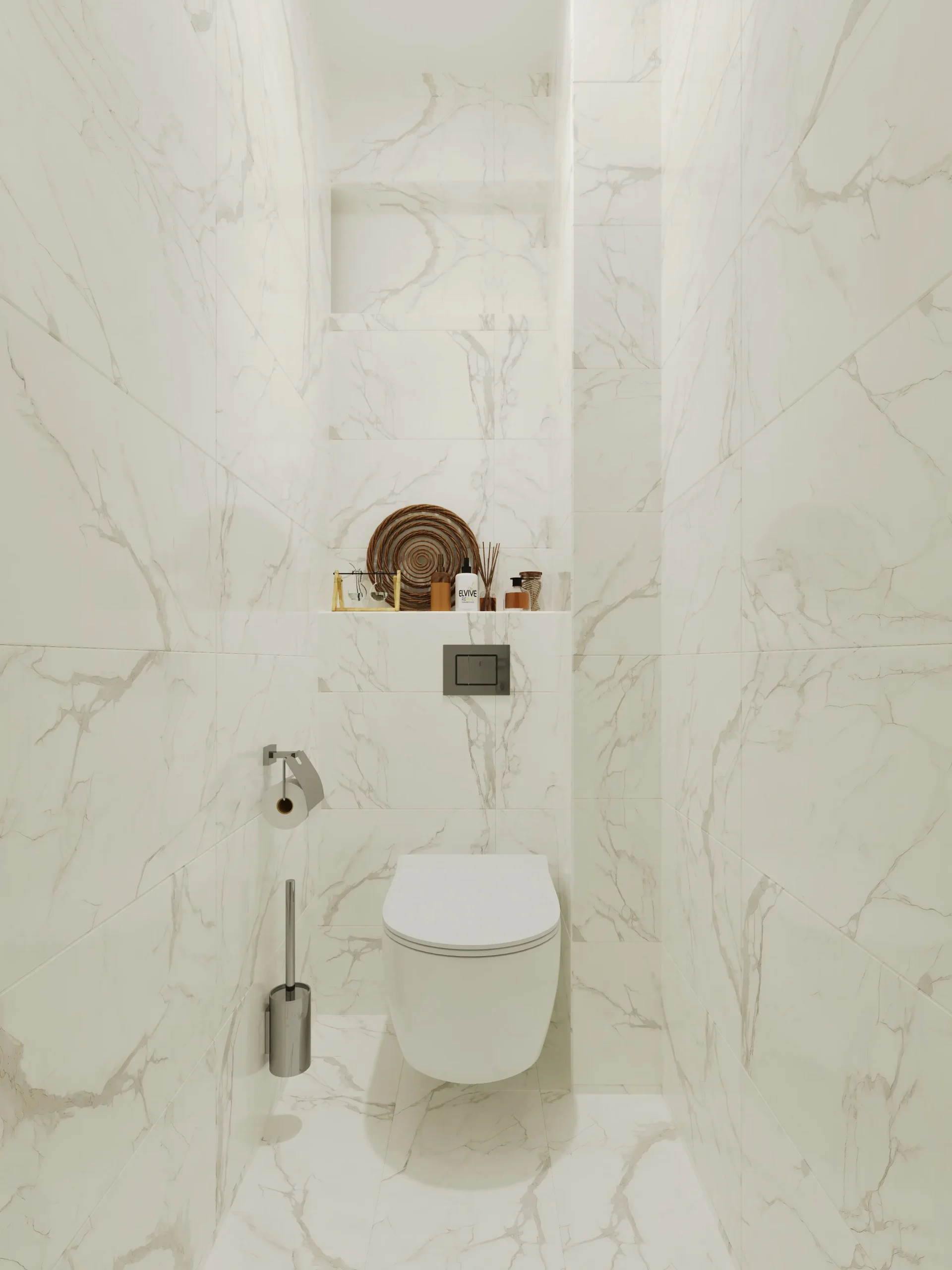 Проект отражает заботу о комфорте и практичности для родителей и малыша. Кухня-гостиная с мраморной столешницей и стильными стульями плавно перетекает в общую атмосферу дома. Работа над этим интерьером была настоящим удовольствием — получилось место, где каждая деталь радует глаз.